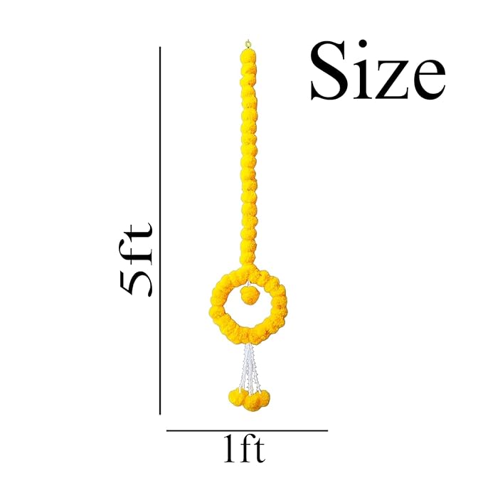 Add a touch of beauty and fun to your home decor with our Beautiful Handmade Marigold Garland Hanging Wall Hanging. Each set includes 5 yellow garlands made of plastic fabric, wood, and artificial pearls. Handcrafted with love, they are perfect for festive occasions like Diwali, weddings, and more. Use them as interior or table decor, or hang them in your pooja room or as a backdrop. Don't miss out on this new concept in decor!